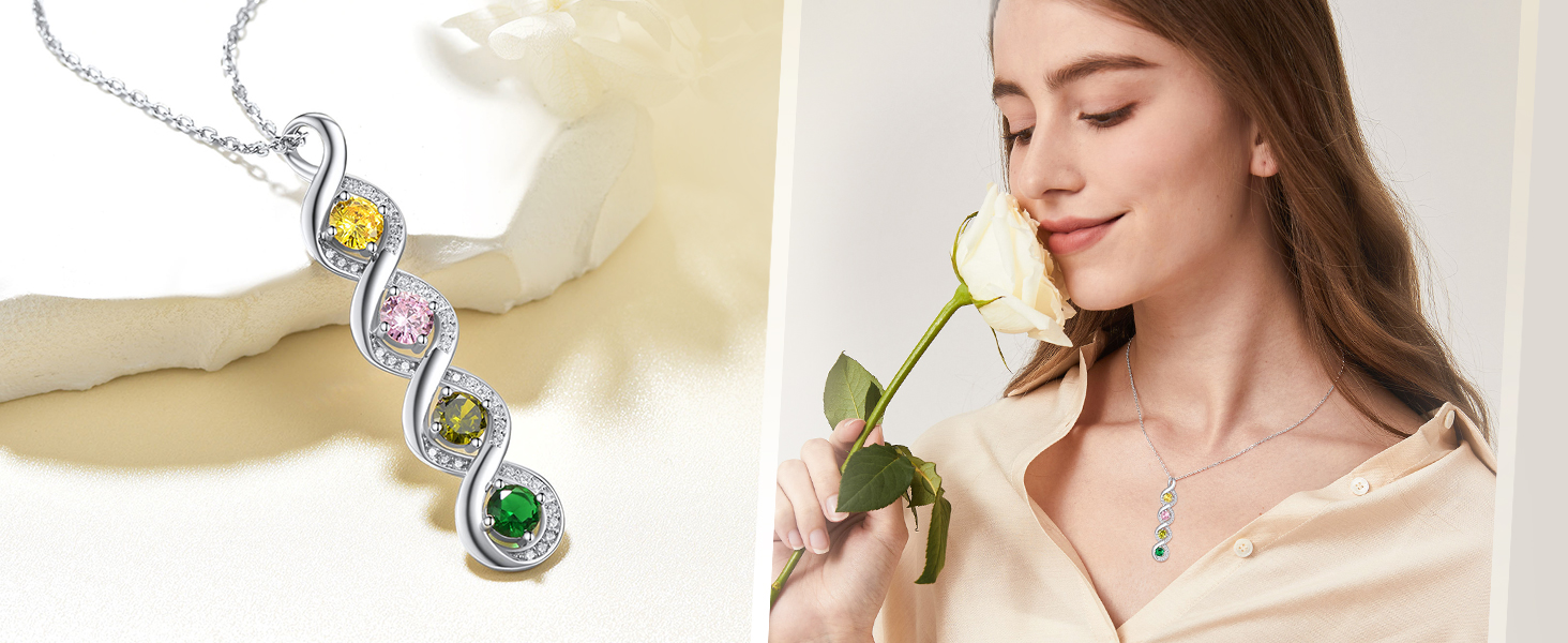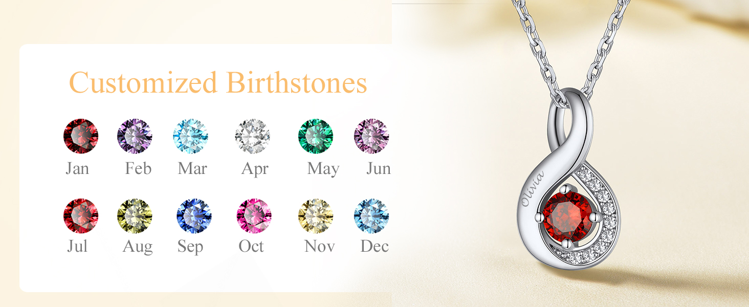 Collier Infini Personnalisé avec Gravure et 1 à 4 Pierres de Naissance pour Maman