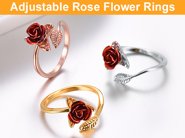 Bague Ajustable Rose pour Femme et Cadeau de Saint-Valentin