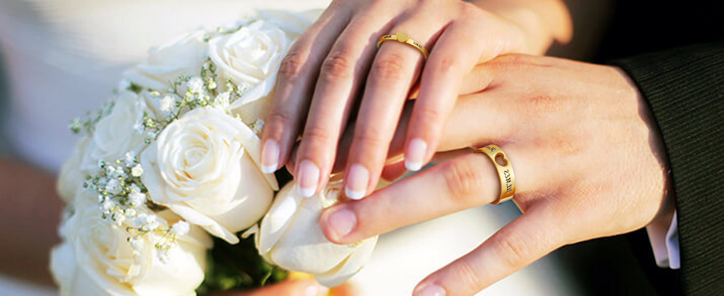 Une paire de bagues de promesse pour couples, faites sur mesure spécialement pour vous. Vous pouvez graver vos initiales, prénoms, lettres, chiffres, dates, symboles significatifs sur les 2 bagues pour garder votre être cher toujours à vos côtés et vous rappeler vos moments spéciaux ! Les bagues de couple personnalisées sont plus que des bijoux, elles expriment votre amour !