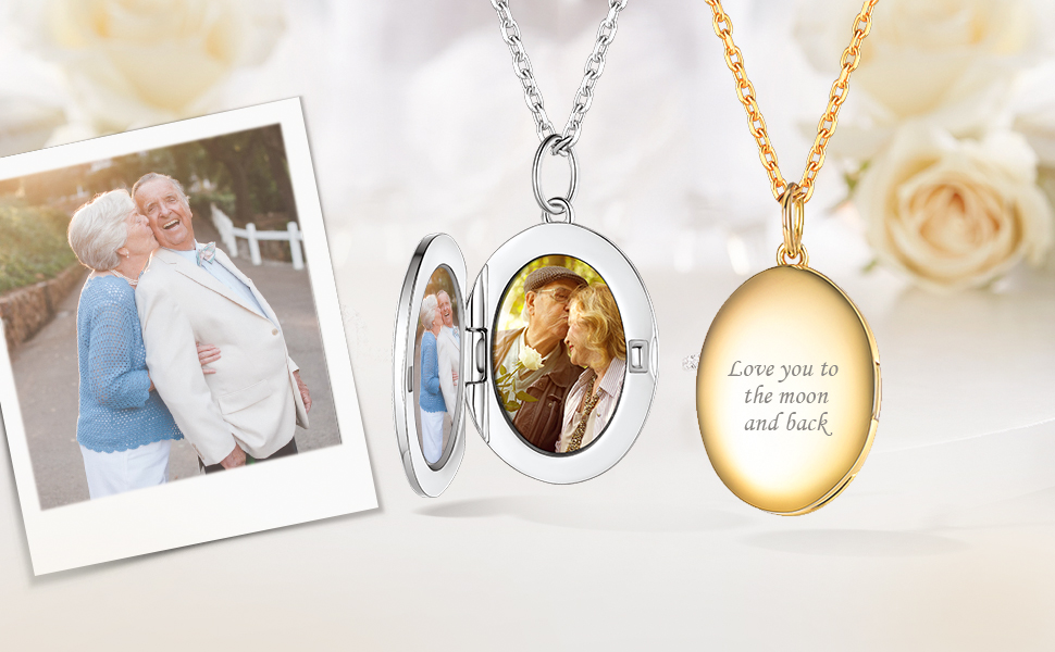 Collier en argent avec médaillon ovale personnalisable, contenant 2 photos. Ajoutez deux images à l'intérieur et gravez votre nom, un texte significatif et une date anniversaire au dos. Un cadeau personnalisé idéal pour montrer votre amour à une personne spéciale dans votre vie !