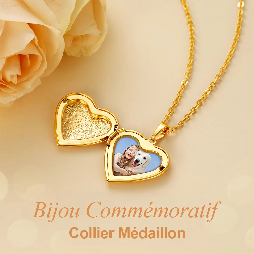 Collier Médaillon Cœur Personnalisé avec Photo