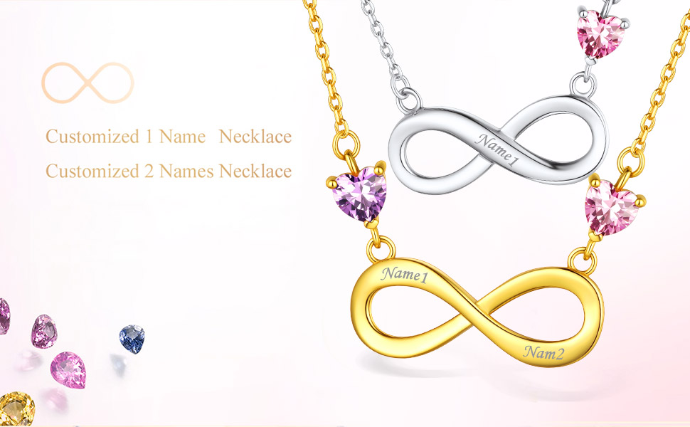 Collier Infini avec Pierre de Naissance Personnalisé – Ajoutez des pierres de naissance, des prénoms ou des initiales pour exprimer votre attention. Fabriqué en argent sterling hypoallergénique et résistant à la rouille. Le pendentif mesure 24,6 mm x 11,7 mm et est accompagné d'une chaîne ajustable de 40 cm avec une rallonge de 5 cm. Parfait pour les anniversaires, les fêtes ou toute occasion spéciale. Un cadeau attentionné pour vos proches.