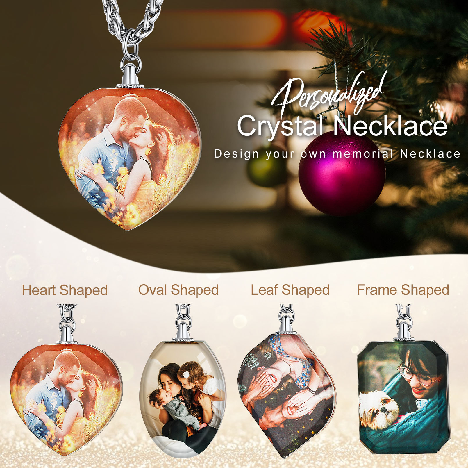 Créez votre propre collier souvenir personnalisé avec ce pendentif en cristal, conçu pour afficher des photos sur ses deux faces. Un cadeau photo unique pour exprimer votre amour à une personne spéciale dans votre vie ! Avec les souvenirs précieux de vos proches sur ce collier, il deviendra un cadeau idéal et une surprise mémorable pour votre maman, épouse, papa, mari, frère ou meilleur(e) ami(e).