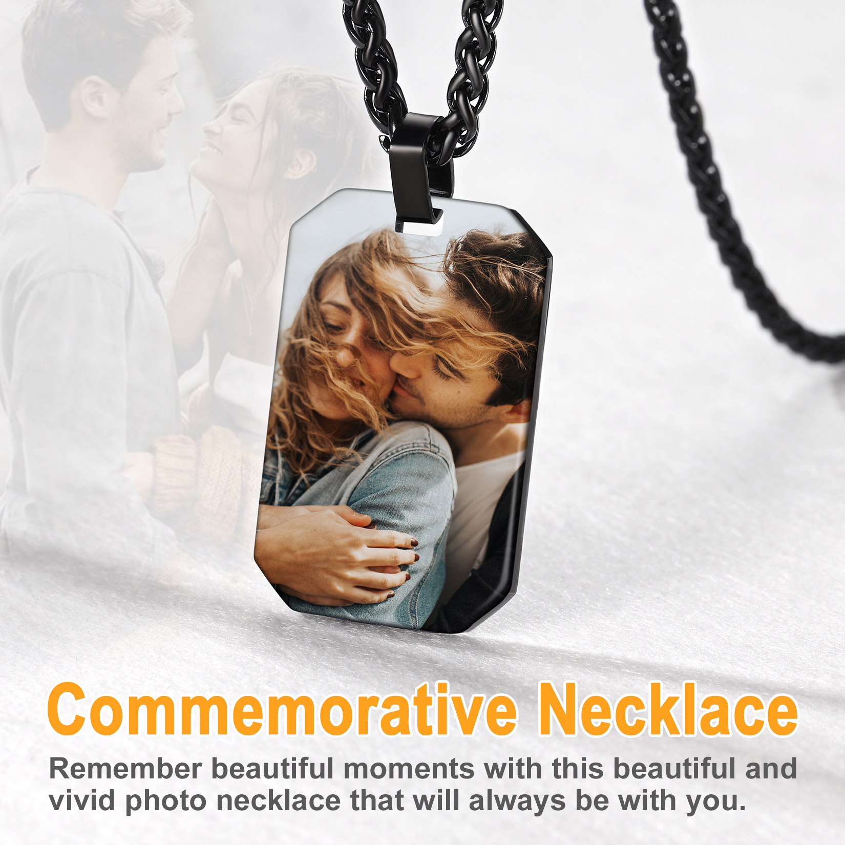 Collier Plaque Militaire Personnalisé avec Photo Gravée pour Hommes