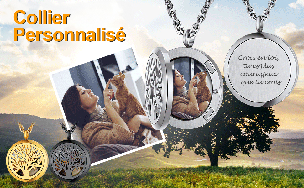 Collier Photo Personnalisé Médaillon Arbre de Vie pour Homme